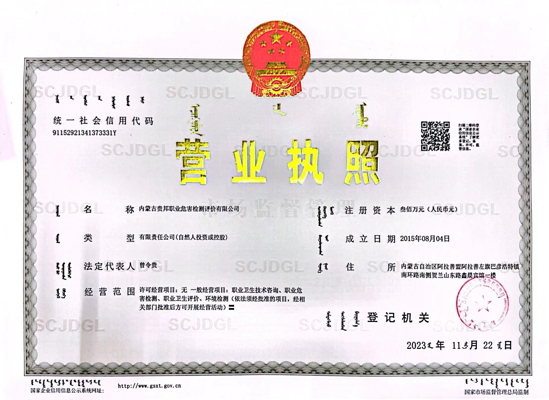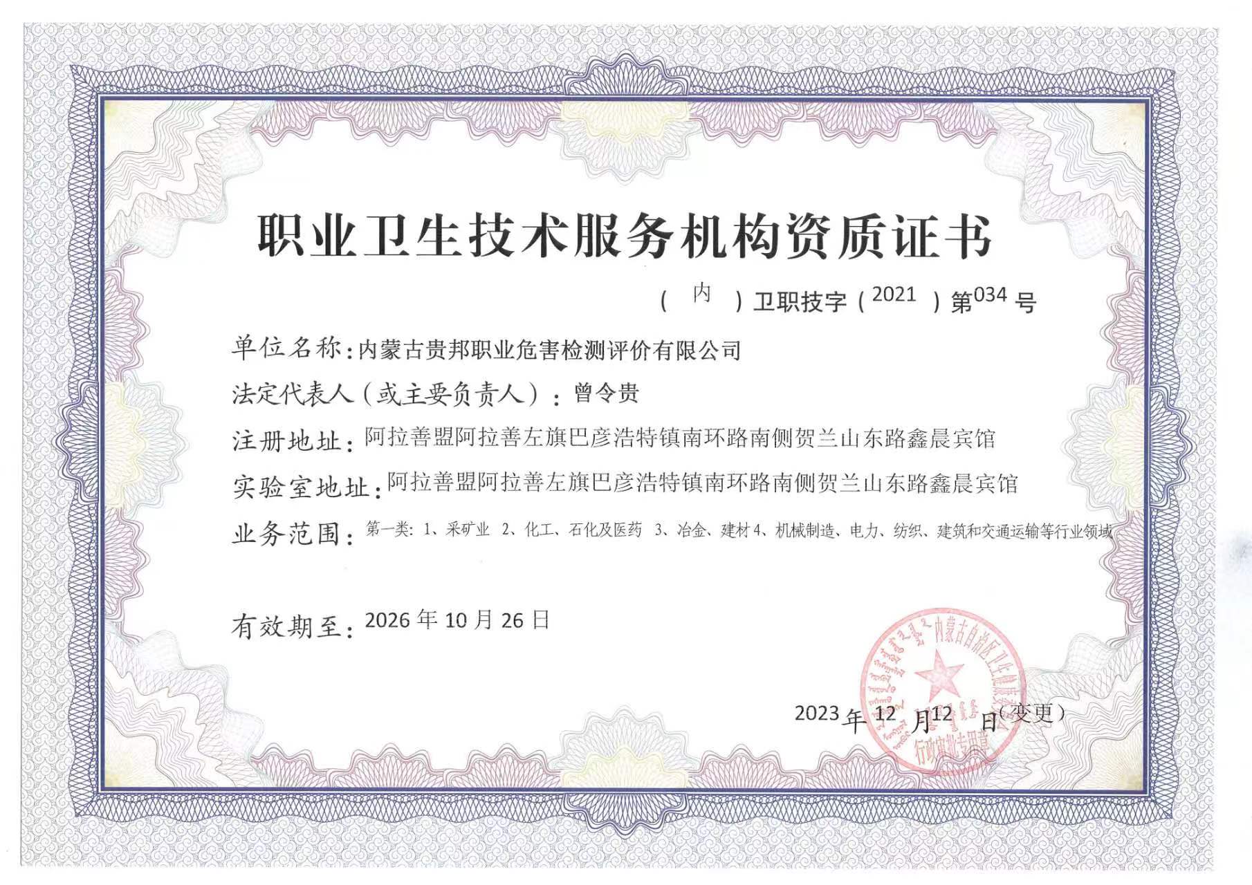 內(nèi)蒙古貴邦職業(yè)危害檢測評價有限公司(m.apachejunctionauto.com)版權所有 地址:阿拉善盟阿拉善左旗賀蘭山東路加氣站南側鑫晨賓館一樓 24小時熱線:18947252199 蒙ICP備:蒙ICP備21006705號-1 公安備案號:50011802010212